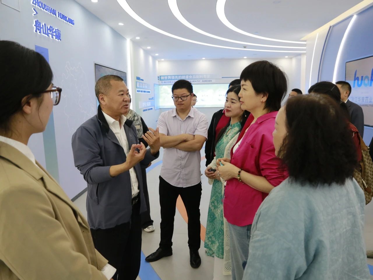 为深化区域食品产业协同发展,推动绿色健康食品产业链创新升级,4月23日,衢州市食品联合会会长、副会长和理事单位等一行赴舟山华康生物科技有限公司开展实地考察,公司董事长陈德水、监事会主席郑芳明等陪同。